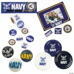 Anchors aweigh! This fun assortment of Navy picks is perfect for a military appreciation function or as giveaways to potential recruits at school. Show off your Naval pride with these Navy pens, stickers, toys and more. Stock up on these picks for swag at community events honoring local heroes. (148 pcs. per unit) Assortment may vary.• Official Licensed Product of the U.S. Navy• By federal law, licensing fees paid to the U.S. Navy for the use of its trademarks provide support for the Navy Trademark Licensing Program, and net licensing revenue is devoted to U.S. Navy Morale, Welfare and Recreation programs. U.S. Navy name, trademarks and logos are protected under federal law and used under license by Oriental Trading. Includes:• 12 Plastic America’s Navy® Flying Discs (9″ diam.)• 12 Metal America’s Navy® Pen & Bookmark Sets (5 1/2″ with 2″ x 6″ cardstock bookmark. Black ink.)• 12 Vinyl America’s Navy® Picture Frame Magnets (7″ x 5″ with 4 1/4″ x 2 3/4″ photo space.)• 1 America’s Navy® Sticker Roll (100 stickers per roll. 1 1/2″)• 12 Foam America’s Navy® Stress Balls (2 1/4″)