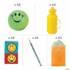 Whether youβre welcoming kids back to school, summer camp, or Vacation Bible School, this kit has everything you need to put a smile on their faces. With its colorful goody bags, mini neon stress balls, brightly designed pencils, handy notepads and plastic water bottles, this Welcome Back Kit can help bring a pop of fun into your next kidsβ event or group activity. (242 pcs. per unit) Simple assembly required. Assortment may vary. Includes: β’ 48 Wooden Confetti Pencils (7 1/2″)β’ 48 Foam Mini Neon Smile Face Stress Balls (2β)β’ 50 Plastic Neon Goody Bags (8 1/2″ x 12″)β’ 48 Plastic Neon Water Bottles (Each 18 oz. bottle includes a carrying strap and pop top. 7 1/2″)β’ 48 Paper Smile Face Spiral Notepads (3″ x 5″ with 30 lined pages.)
